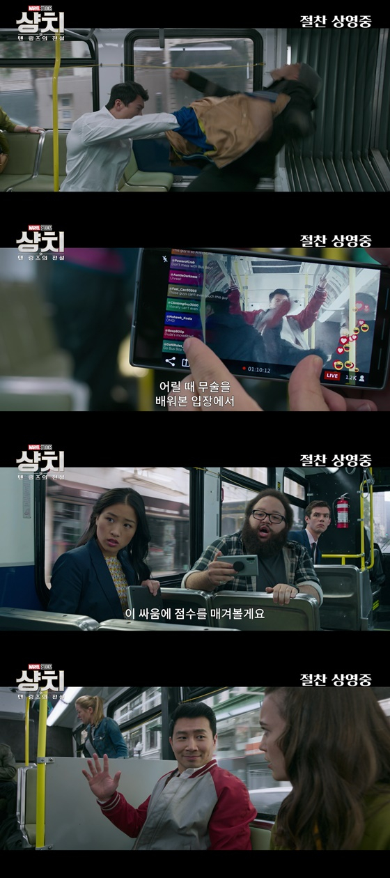 특히 버스 구조물을 활용한 현실감 넘치는 스턴트와 버스 내부와 외부를 오가는 아슬아슬한 격투 장면들이 긴장감을 끌어올리며 '샹치와 텐 링즈의 전설'에서만 느낄 수 있는 새로운 스타일의 익스트림 액션에 대한 기대감을 고조시킨다. 여기에 관객들의 만장일치 호평까지 더해지면서 입소문 열풍이 더욱 거세지고 있어 9월 극장가 최강자로서 거침없는 흥행 질주를 이어갈 것 전망이다.