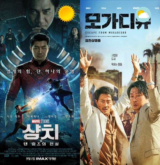 한편 '샹치와 텐 링즈의 전설'이 독주하고, '모가디슈' '인질' '싱크홀' 등 올여름 한국영화 개봉작들의 뒤쫓는 형국은 9월15일 '기적'과 '보이스' 등 한국영화 신작이 개봉하면 변화가 있을 전망이다.