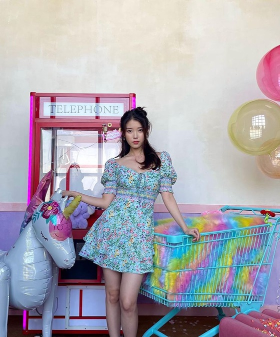 사진 속 아이유는 꽃무늬 원피스를 입고 무언가를 촬영 중인 모습이다. 나날이 물오르는 미모가 시선을 모은다.