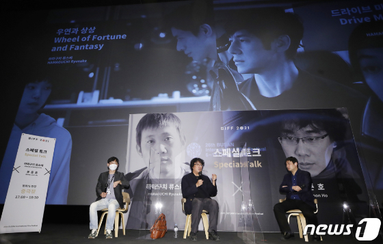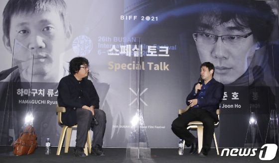 7일 오후 부산 해운대 영화의 전당 중극장에서 하마구치 류스케 감독의 화제작 2편을 묶은 특별 프로그램과 봉준호 감독이 함께하는 스페셜 대담이 열렸다. 이는 네이버 나우와 부산국제영화제 공식 유튜브 채널 등 온라인을 통해 생중계 됐다.