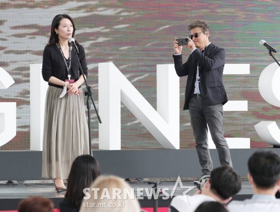 8일 부산시 해운대구 우동 영화의 전당 야외무대에서 제26회 부산국제영화제에 공식 초청된 영화 '당신얼굴 앞에서' 야외무대인사가 진행됐다. 이날 무대인사에는 배우 권해효 조윤희가 참석했다. 홍상수 감독과 주연배우 이해영은 참석하지 않았다.