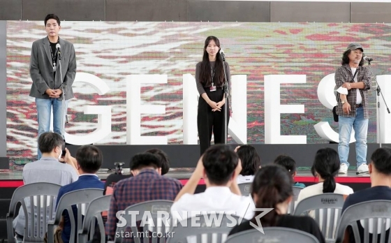 9일 오후 부산 해운대 우동 영화의전당 야외무대에서 제26회 부산국제영화제 초청작인 영화 '인트로덕션'(감독 홍상수) 야외무대인사가 진행됐다. 이날 행사에는 신석호, 박미소, 기주봉이 참석했다. 홍상수 감독과 영화에 출연한 김민희는 불참했다.