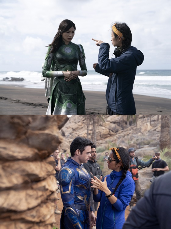 공개된 클라스 스틸은 기존 마블 작품들과 차별화된 클로이 자오 감독만의 새로운 방식으로 그려낸 '이터널스'의 다양한 모습을 엿볼 수 있다. 먼저 클로이 자오 감독이 세르시 역을 맡은 젬마 찬, 이카리스 역을 맡은 리차드 매든과 함께 진지하게 의견을 주고 받는 모습은 그린 스크린이 아닌 실제 로케이션 촬영지를 배경으로 해 독보적 비주얼에 대한 기대감을 자극한다.