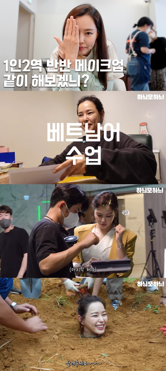 최근 이하늬의 공식 유튜브 채널 '하늬모하늬'에는 이하늬가 1인 2역 캐릭터를 소화하기 위해 사전부터 철저하게 준비를 하는 모습이 담긴 영상이 공개됐다. 여기서 이하늬는 스태프들과 함께 직접 헤어스타일부터 메이크업까지 사전 테스트를 해보며 한 얼굴로 다른 성격, 다른 이미지를 가진 두 캐릭터를 표현하기 위해 고민한 부분들을 여과 없이 공개했다.