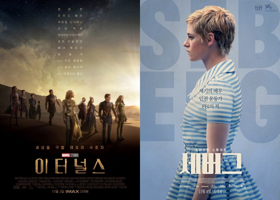 드디어 '이터널스'가 온다. '어벤져스'를 이어 마블 페이즈4를 여는 '이터널스' 개봉을 앞두고 영화팬들의 관심이 집중되고 있다. 위드 코로나와 함께 전국의 521개국 극장에서 6천원 할인권을 배포하는 가운데, '이터널스'의 오프닝이 얼마일지, 주말에는 얼마나 많은 관객이 극장을 찾을지 주목 된다.