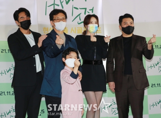 연예영화'싸나희 순정, 사랑해주세요'[★포토]발행 : 2021.11.16 ・ 17:17이동훈 기자배우 전석호, 심은진, 박명훈, 김지환, 정병각 감독이 16일 오후 서울 CGV용산아이파크몰에서 진행된 영화 '싸나희 순정' 언론시사회에 참석해 포즈를 취하고 있다.도시의 고단한 삶에서 탈출해 마가리에 도착한 시인 '유씨'와 동화 작가를 꿈꾸는 엉뚱발랄한 농부 '원보'의 동거이야기를 그린 영화 '싸나희 순정'은 오는 25일 개봉된다. /2021.11.16<저작권자 © 스타뉴스, 무단전재 및 재배포 금지>싸나희순정추천 기사이동훈 기자기자홈좋아요 연예-영화의 인기 급상승 뉴스연예-영화의 최신 뉴스