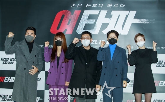 연예영화'여타짜, 기대하세요'[★포토]발행 : 2021.11.25 ・ 17:16이동훈 기자최민철, 이채영, 이지승 감독, 정혜인, 김사희가 25일 서울 롯데시네마 건대입구점에서 진행된 영화 '여타짜'(감독 이지승) 언론시사회에 참석해 포즈를 취하고 있다.포커판에 뛰어든 '미미'가 미스터리한 타짜 '오자와'를 만난 뒤 일생일대의 거래를 위해 목숨까지 배팅하는 이야기를 그린 범죄 도박극 '여타짜'는 내달 8일 개봉된다. /사진제공=더그레이트컴퍼니 2021.11.25<저작권자 © 스타뉴스, 무단전재 및 재배포 금지>여타짜추천 기사이동훈 기자기자홈좋아요 연예-영화의 인기 급상승 뉴스연예-영화의 최신 뉴스