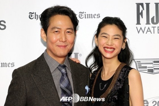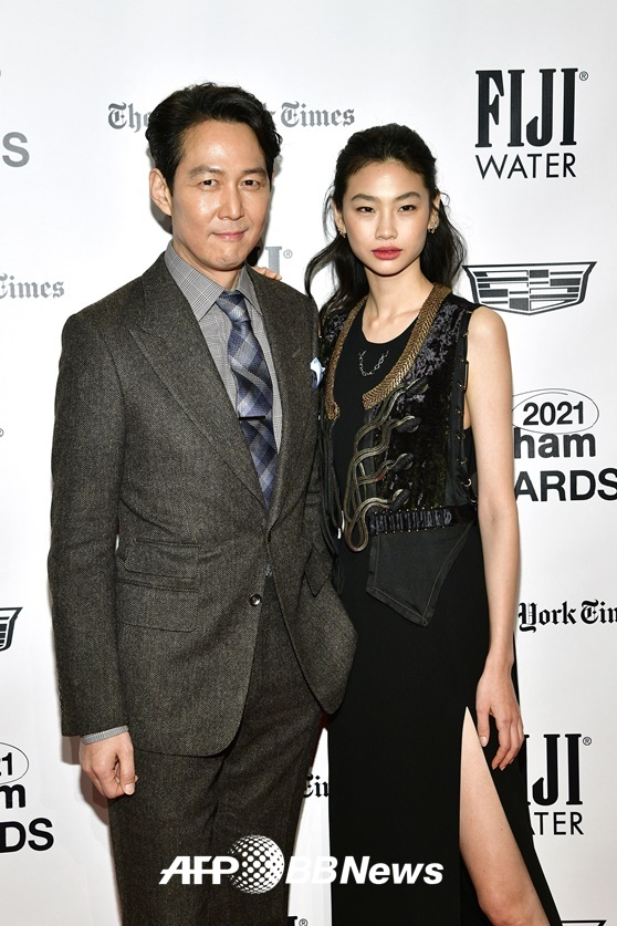 이날 이정재는 브라운 빛이 도는 그레이 수트를 입고 레드카펫에 올라 미소를 지었다. 정호연은 독특한 블랙 드레스를 입고 세계적인 모델의 핏을 자랑해 눈길을 사로잡았다. 황동혁 감독도 함께 무대에 올라 '오징어 게임'의 인기를 만끽했다.