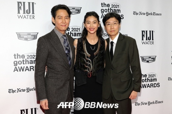 '오징어 게임'의 주역인 이정재, 정호연 그리고 황동혁 감독이 제31회 미국 고담 어워즈 레드카펫에 올랐다.