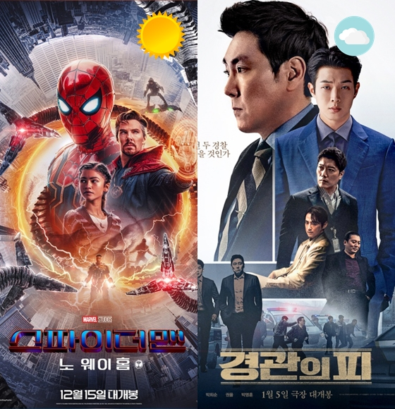 '스파이더맨: 노 웨이 홈'과 '경관의 피가 주말 박스오피스 1, 2위를 차지할 전망이다.