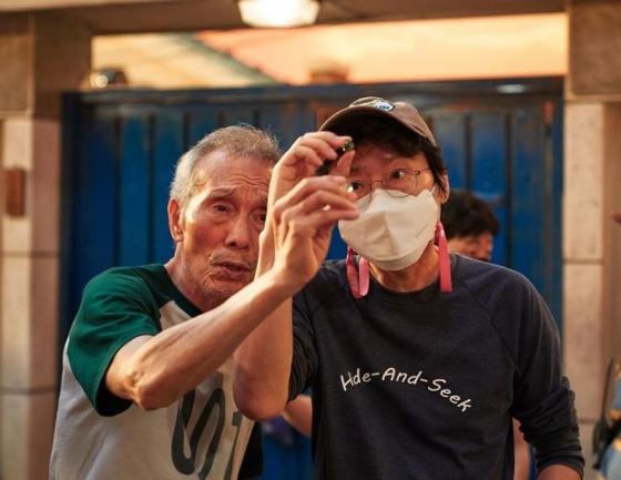 이병헌은 자신의 인스타그램에 "This is the Frontman speaking, 'Bravo!'"라는 글과 함께 오영수와 황동혁 감독이 함께 촬영 중인 모습을 게재했다.