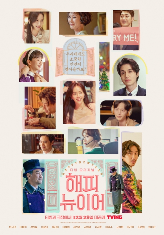 11일 영화계에 따르면 티빙은 이번 설 연휴에 '해피 뉴 이어'를 6부작 확장판으로 공개할 계획이다. '해피 뉴 이어'는 저마다의 사연을 안고 호텔 엠로스를 찾은 사람들이 각자의 방식으로 자신만의 인연을 만들어가는 이야기를 그린 영화. '엽기적인 그녀' 곽재용 감독이 메가폰을 잡고, 한지민과 이동욱 강하늘 임윤아 원진아 이혜영 정진영 김영광 이광수 고성희 조준영 원지안 등이 출연했다. 지난달 29일 극장과 티빙을 통해 동시에 공개됐다.