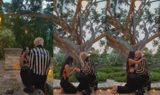 머신 건 켈리 역시 자신의 인스타그램에 "우리가 사랑에 빠졌던 바로 그 나무 아래"라며 "그녀에게 청혼하기 위해 이곳으로 다시 데려왔다"라고 밝혔다. 그는 "탄생석 반쪽이 서로 끌어당겨 우리의 사랑을 형상화해 디자인했다"며 약혼 반지를 공개하기도 했다.