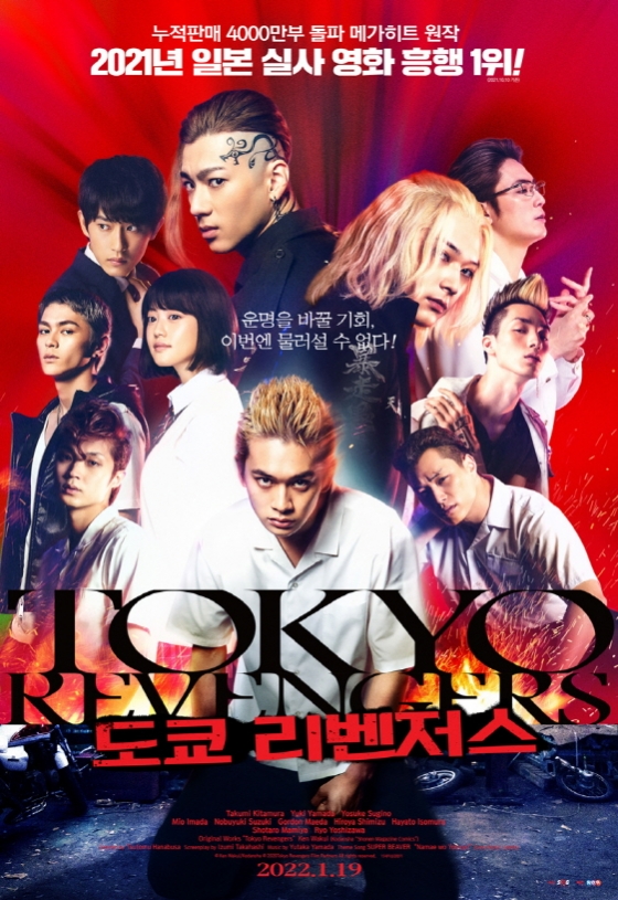 3일 홍보사 워너비펀은 이 같은 소식을 전했다. '도쿄 리벤저스'는 희망 없이 살아가던 청년 타케미치(키타무라 타쿠미)가 첫사랑 여자친구의 사망 사고 뉴스를 본 후 10년 전 과거로 돌아가 운명을 바꾸기 위한 인생 리벤지를 시작하는 타임리프 드라마. 일본에서 누적 판매 5000만부를 돌파한 만화를 원작으로 한다. 개성 강한 캐릭터들과 탄탄한 스토리로 TV애니메이션으로도 방영돼 인기를 모았다.