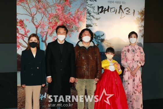 연예영화'매미소리, 기대하세요'[★포토]발행 : 2022.02.07 ・ 13:42이동훈 기자가수 송가인, 배우 이양희, 이충렬 감독, 배우 서연우, 주보비가 7일 서울 광진구 롯데시네마 건대입구점에서 진행된 영화 '매미소리'(감독 이충렬) 언론시사회에 참석해 포즈를 취하고 있다.출상 전날 밤 초상집 마당에서 광대들과 상여꾼들이 벌이는 진도 전통 민속놀이인 '다시래기'를 중심으로 부녀의 갈등과 화해를 그린 영화 '매미소리'는 오는 24일 개봉된다. /2022.02.07<저작권자 © 스타뉴스, 무단전재 및 재배포 금지>매미소리추천 기사이동훈 기자기자홈좋아요 연예-영화의 인기 급상승 뉴스연예-영화의 최신 뉴스