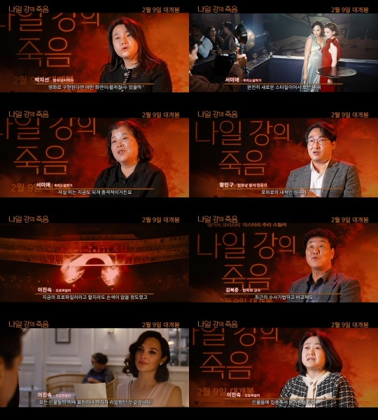 마지막으로 '나일 강의 죽음'에서만 볼 수 있는 황홀하고 매혹적인 비주얼에 대해 "이집트의 풍광이라든지 굉장한 스케일"(서미애), "실제로 내가 현장에서 바로 보는 것 같은 착각이 들 정도"(김복준), "잘 구현된 화면이 살인 사건에 더 몰입감을 높여주었다"(박지선), "단서를 찾다 보면 시간 가는지 모르고 볼 수 있을 것"(황민구) 등 찬사를 전하며 꼭 극장에서 봐야하는 작품으로 강력 추천했다.