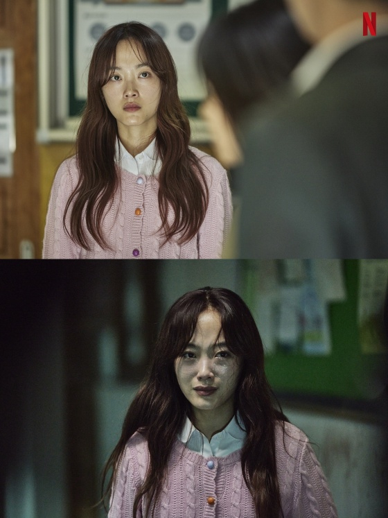 무엇보다 앞서 넷플릭스 시리즈 '오징어 게임'에서 목숨을 건 게임 속 친구를 위해 자신을 희생하는 지영 역을 맡아 대중의 스포트라이트를 받은 만큼, 이번 작품에서의 연기가 궁금증을 높인바. 넷플릭스 시리즈 '지금 우리 학교는'에서는 위기 속 자신의 안위만을 걱정하는 이기적인 인물 이나연으로 분해 생존에 대한 두려움과 욕망을 표정과 눈빛, 악에 받친 목소리로 서슴없이 표현해내며 강렬한 임팩트를 선사했다.