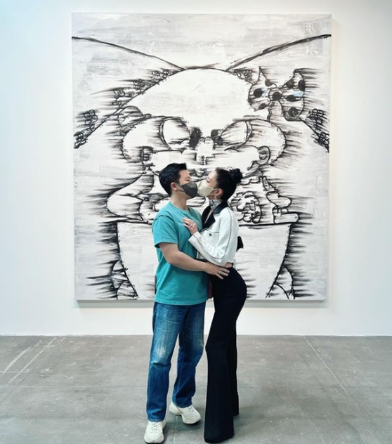 사진 속 클라라는 한 미술관이 작품 앞에서 남편 사무엘 황과 입을 맞추고 있다. 두 사람은 마스크를 낀 채, 키스를 하는 모습. 사무엘 황은 클라라의 허리를 끌어 안았고 클라라는 가슴에 손을 얹고 있는 모습이다.