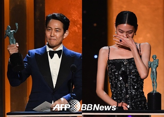배우 이정재와 정호연이 넷플릭스 오리지널 '오징어 게임'으로 미국 배우조합상 시상식( SAG Awards)에서 남녀주연상을 수상했다.