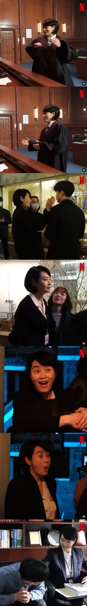 공개 된 사진 속 김혜수는 법복을 입고 법정에서 춤을 추는가 하면, 소년범 역할을 맡은 배우에게도 장난을 치며 웃고 있다. 작품 속에서 차갑고 근엄하던 모습과는 달라 웃음을 자아낸다.