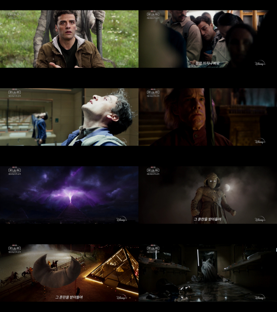 여기에 디즈니+에서 처음으로 선보이는 마블의 초월적 히어로 '문나이트'의 무자비하고 거침없는 액션 시퀀스 또한 엿볼 수 있어 이목을 사로잡는다. 밤 하늘을 가르는 고공 액션부터 단 1초의 망설임도 없는 타격감 넘치는 액션까지 그동안 마블에서 보지 못했던 새로운 스타일의 액션들이 펼쳐질 것을 예고한다.