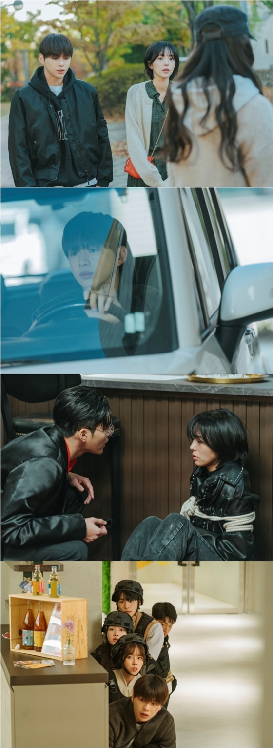 청춘들의 선택과 행보에 이목이 쏠린 가운데, 위승현과 고은강은 진실 추적에 나섰다. 공개 된 사진 속 숨죽인 채 누군가를 쫓는 위승현, 그리고 꽁꽁 묶인 채로 조한솔 대표와 마주한 고은강의 위태로운 모습이 긴장감을 높인다. 여기에 몸을 숨기고 상황을 예의주시하고 있는 '청춘즈' 위승현, 김탁(이신영 분), 우주영(민도희 분), 서범주(김우석 분), 신아리(천영민 분)도 아슬하기는 마찬가지. 이들은 무사히 사건을 해결하고 정의를 바로잡을 수 있을지 궁금해진다.