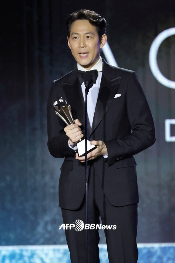 ㅇ...배우 이정재가 미국을 휩쓸고 있다. 이정재가 배우조합상 시상식과 미국 인디펜던트 스피릿 어워즈에서 남우주연상을 수상한 가운데, 미국 크리틱스 초이스에서도 남우 주연상을 수상했다. 이정재는 한국시간으로 지난 14일 진행 된 미국 크리틱스 초이스에서 남우 주연상 트로피를 거머 쥐었다. 이정재는 무대에 올라 트로피를 받고 "오 마이 갓"이라며 놀라운 심경을 표현했다. 그는 "크리틱스 초이스 어워즈에 고맙다. 이 놀라운 마음을 어떻게 표현해야 할지 모르겠다"라며 "넷플릭스와 '오징어 게임' 팀에도 감사하다"라고 영어로 소감을 밝혔고, 현장에 있던 배우 정호연, 박해수, 황동혁 감독 등은 박수를 치며 환호했다. 또 이날 '오징어 게임'은 최우수 외국어 시리즈 상도 수상했다.