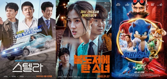 오미크론 여파로 잔뜩 움츠린 극장가가 좀처럼 반등의 계기를 찾지 못하고 있다. 지난 3월 할리우드 블록버스터 '더 배트맨'부터 최민식 주연의 '이상한 나라의 수학자', 정우 주연의 '뜨거운 피' 등이 개봉했지만, 기대만큼 관객을 불러모으지 못했다. 4월 첫주에는 대작은 아니지만 충분히 관객들의 관심을 끌만한 다양한 장르의 한국 영화가 출격을 준비하고 있다. 추격 코미디 '스텔라'부터 현실 폭주 드라마 '불도저에 탄 소녀'까지 침체된 극장가에 활기를 불어 넣어주며 한국 영화의 저력을 입증할 수 있을지 기대가 모아진다.