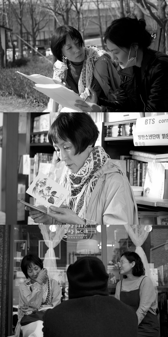 12일 '소설가의 영화'가 촬영 현장 스틸을 공개했다. '소설가의 영화'는 2021년 3월에 2주간 촬영한 흑백 영화로 이번에 공개된 촬영 스틸에는 지난해 3월의 풍경 속에서 대사를 맞춰보는 이혜영과 김민희의 모습, 어느 책방 안에서 엽서를 바라보는 이혜영의 모습, 홍상수 감독의 시선 너머로 옅은 미소를 짓는 이혜영과 서영화의 모습, 대사를 맞춰보며 웃는 배우들의 화기애애한 모습, 촬영을 들어가기 직전의 이혜영, 서영화, 박미소의 모습, 마지막으로 배우 이혜영, 김민희, 하성국, 서지훈 동시녹음 기사가 홍상수 감독이 땅에 그리고 있는 무언가를 함께 집중하며 쳐다 보고 있는 모습이 담겨 있다.