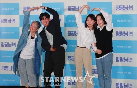 연예영화'사랑스런 평평남녀'[★포토]발행 : 2022.04.19 ・ 16:44이동훈 기자배우 서갑숙, 이한주, 이태경, 김수정 감독이 19일 오후 서울 CGV 용산아이파크몰에서 진행된 영화 '평평남녀'(감독 김수정) 언론시사회에서 포즈를 취하고 있다.능력은 있지만 승진 기회를 번번이 놓친 영진이 빽만 있는 낙하산 상사를 만나 일과 사랑이 제대로 꼬여버린 이야기를 담은 영화 '평평남녀'는 오는 28일 개봉된다. /2022.04.19<저작권자 © 스타뉴스, 무단전재 및 재배포 금지>평평남녀추천 기사이동훈 기자기자홈좋아요 연예-영화의 인기 급상승 뉴스연예-영화의 최신 뉴스