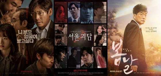 영화를 보며 팝콘을 먹고, 콜라를 마시는 일상이 다시 우리 곁을 찾아온다. 25일부터 영화관 등 다중이용시설 내 취식이 허용되는 가운데 각 극장은 다시 관객을 불러모으기 위한 캠페인을 실시하는 등 코로나 대유행 기간 동안 큰 타격을 입었던 영화계가 정상화를 앞두고 있다. 이 가운데 '니 부모 얼굴이 보고 싶다'가 촬영을 마친 지 5년 만에 개봉하고, '봄날'과 '서울괴담' 등 다양한 장르의 영화가 같은 날 관객들을 찾아온다. 세 영화는 얼마나 많은 관객들의 발걸음을 극장으로 돌릴 수 있을까.