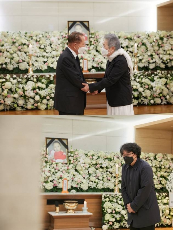 봉준호 감독은 "몇달 전에 뵀는데 실감이 안난다"며 "영정사진이 영화 소품처럼 느껴진다"고 강수연의 부재를 믿기지 않아했다.