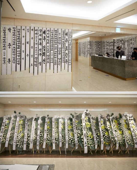 강수연의 마지막을 기리는 근조화환도 박찬욱 감독, 이준익 감독, 김성수 감독, 배우 엄앵란, 안성기, 전도연, 독고영재, 김보성, 문성근, 박중훈, 이성민, 김혜수, 송강호, 김희선, 조승우, 문근영, 김선아, 김의성, 이정현, 주호성, 장나라, 유지태, 한효주, 추자현, 박소이, 김승우, 김남주, 최란, 가수 김건모, 이은미, 넷플릭스 등이 보냈다. 윤석열 대통령 당선인과 김부겸 국무총리, 윤호중 더불어민주당 비상대책위원장의 근조화환도 전해졌다.