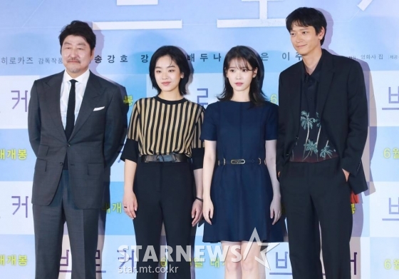 10일 오전 서울 용산구 CGV용산아이파크몰에서 영화 '브로커'(감독 고레에다 히로카즈) 제작보고회가 열렸다. 이날 행사에는 송강호, 강동원, 이지은(아이유), 이주영 그리고 고레에다 히로카즈 감독이 화상으로 참석했다.
