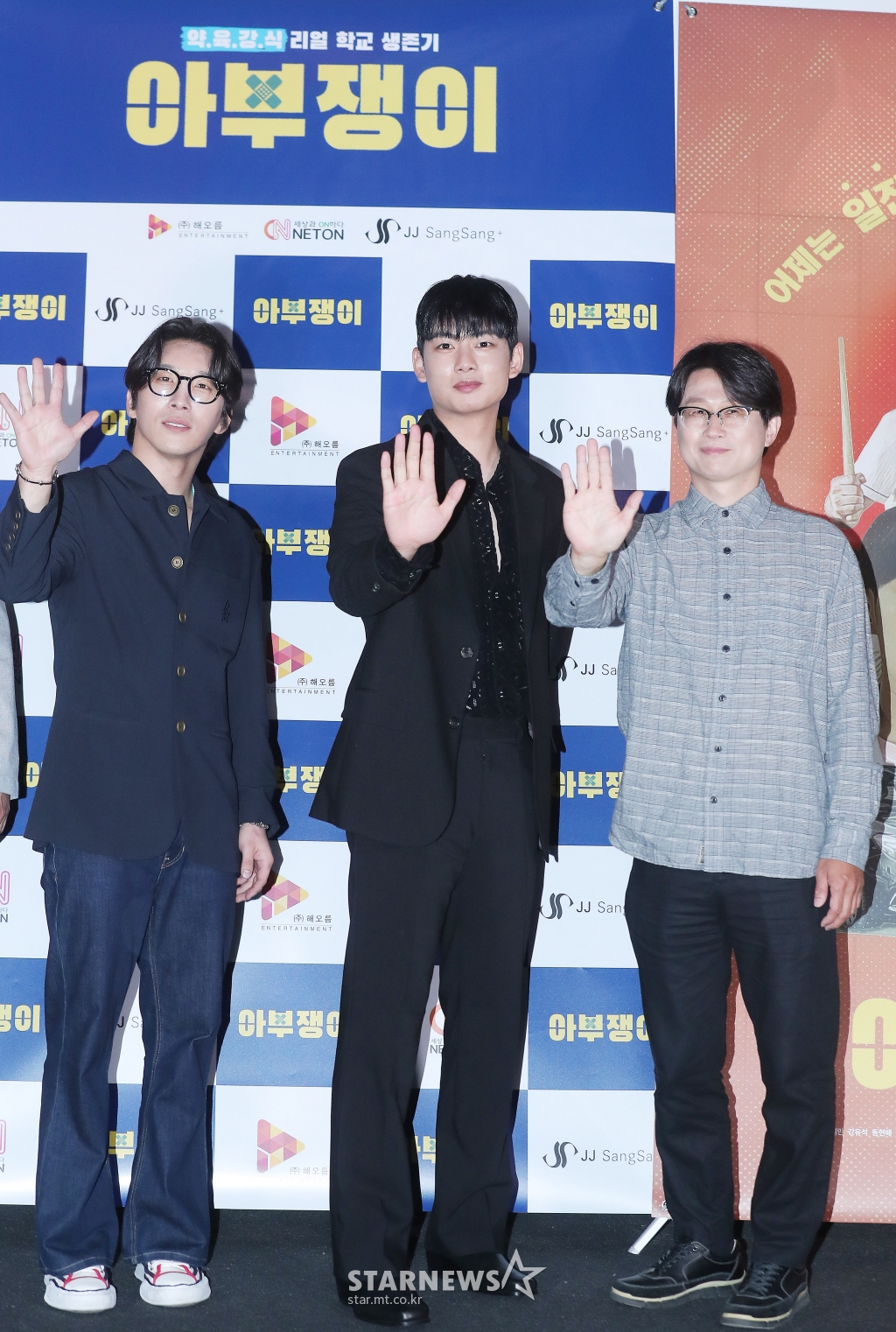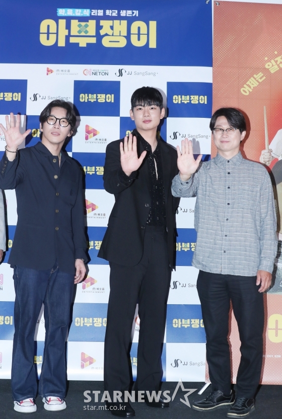 연예영화'아부쟁이' 학원폭력 멈춰![★포토]발행 : 2022.06.02 ・ 18:50김창현 기자배우 동현배, 류의현, 황승재 감독이 2일 오후 서울 용산구 CGV용산아이파크몰에서 진행된 영화 '아부쟁이' 언론시사회에 참석해 포즈를 취하고 있다.'아부쟁이'는 일진 출신 주인공 박건이 전국 조폭들의 집합소라고 불리는 막장 학교 풍랑고에 전학 오면서 하루아침에 먹이 사슬 최하위로 전락하는 이야기다. 오는 16일 개봉. / 2022.06.02<저작권자 © 스타뉴스, 무단전재 및 재배포 금지>아부쟁이추천 기사김창현 기자기자홈좋아요 연예-영화의 인기 급상승 뉴스연예-영화의 최신 뉴스