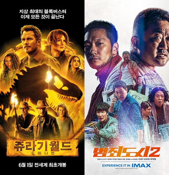 '범죄도시2'와 '쥬라기월드:도미니언' 쌍끌이 흥행으로 6월 극장가가 엔데믹 시대로 접어들며 활기를 되찾고 있다.