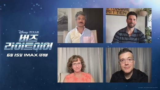 7일 디즈니 픽사 애니메이션 '버즈 라이트이어' 화상 기자 간담회가 진행됐다. 이날 행사에는 배우 크리스 에반스, 타이카 와이티티, 앤거스 맥클레인 감독, 게린 서스맨 프로듀서가 참석했다.