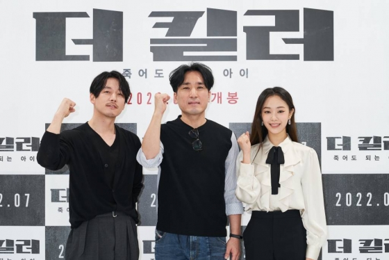 최재훈 감독(가운데), 배우 장혁, 걸그룹 공원소녀 이서영(앤)이 8일 오전 온라인으로 진행된 영화 '더 킬러:죽어도 되는 아이' 제작보고회에 참석해 포즈를 취하고 있다. '더 킬러:죽어도 되는 아이'(감독 최재훈)는 호화로운 은퇴 생활을 즐기던 업계 최강 킬러 '의강'이 겁도 없이 자신을 건드린 놈들을 끝까지 쫓아 응징하는 액션 영화다. 오는 7월 한국과 미국 동시 개봉. / 사진제공 = (주)아센디오 / 2022.06.08 /사진=김창현 기자 chmt@