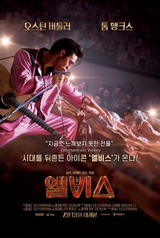 13일 워너브라더스 코리아는 이 같은 소식을 전했다. '엘비스'는 트럭을 몰던 무명가수 '엘비스'가 그를 한 눈에 알아 본 스타메이커 '톰 파커'를 만나 단 하나의 전설이 되기까지 전 세계를 뜨겁게 달군 음악과 무대, 그보다 더 뜨거웠던 삶을 그린 이야기를 담은 작품. 전설적인 스타 엘비스 프레슬리의 삶을 매니저 톰 파커의 시선으로 그렸다는 점에서 기획부터 화제를 모았다. 오스틴 버틀러가 엘비스 프레슬리로, 톰 행크스가 톰 파커를 연기했다.