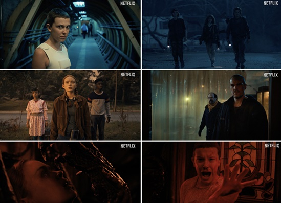 오는 7월 1일 시즌4 2부의 공개를 앞두고 발표된 예고편은 최후의 전투를 앞둔 주인공들의 긴장이 고스란히 전해져 보는 이까지 덩달아 숨을 몰아쉬게 만든다. 끔찍한 죽음을 몰고 다니는 강력한 빌런 '베크나'의 등장과 능력을 잃어버린 일레븐, 수용소에 감금된 호퍼 등 호킨스와 캘리포니아, 러시아를 배경으로 펼쳐졌던 각각의 이야기가 드디어 하나로 모이며 시청자들의 마음을 설레게 하고 있다.