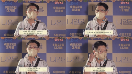 먼저 가수 양희은이 영화 '니얼굴'에 개봉 축하 메시지를 보냈다. 영화의 진한 여운에 잠긴 양희은은 "아주 감동이 깊었다"라며 진심 어린 소감을 전했다. 이어서 tvN 토일드라마 '우리들의 블루스'에 은혜씨와 함께 출연한 배우 양희경을 언급하며 "은혜 씨에 대해서는 제 동생(양희경) 만큼은 모르지만 저하고 제 동생을 그려준 적이 있다"라고 밝힌 양희은은 "요새는 '은혜씨가 나 그려줬다'가 아주 큰 자랑이라고 들었는데"라고 말해 최근 은혜씨의 치솟는 인기를 실감케 했다.