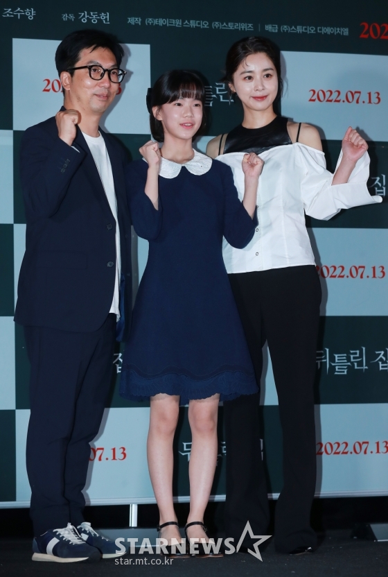 연예영화'뒤틀린 집, 화이팅'[★포토]발행 : 2022.07.05 ・ 16:26이동훈 기자강동헌 감독, 배우 김보민, 서영희가 5일 오후 서울 CGV용산아이파크몰에서 진행된 영화 '뒤틀린 집'(감독 강동헌) 언론시사회에 참석해 포즈를 취하고 있다.원치 않게 외딴집으로 이사 온 가족이 열지 말아야 할 금단의 문을 열게 되면서 맞이한 섬뜩한 비극을 다룬 미스터리 하우스 호러 ‘뒤틀린 집’은 오는 13일 개봉한다. /2022.07.05<저작권자 © 스타뉴스, 무단전재 및 재배포 금지>뒤틀린집추천 기사이동훈 기자기자홈좋아요 연예-영화의 인기 급상승 뉴스연예-영화의 최신 뉴스