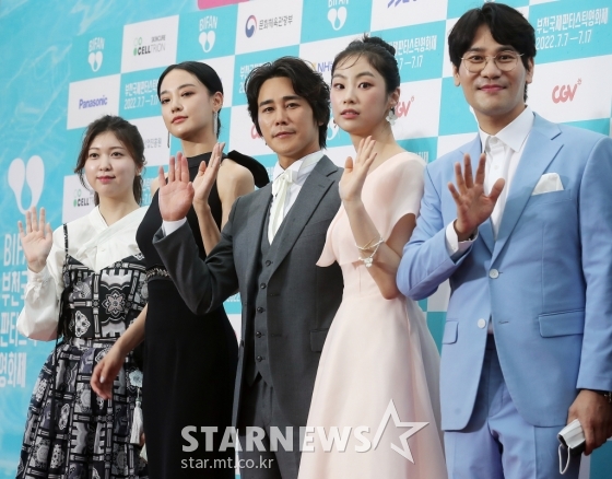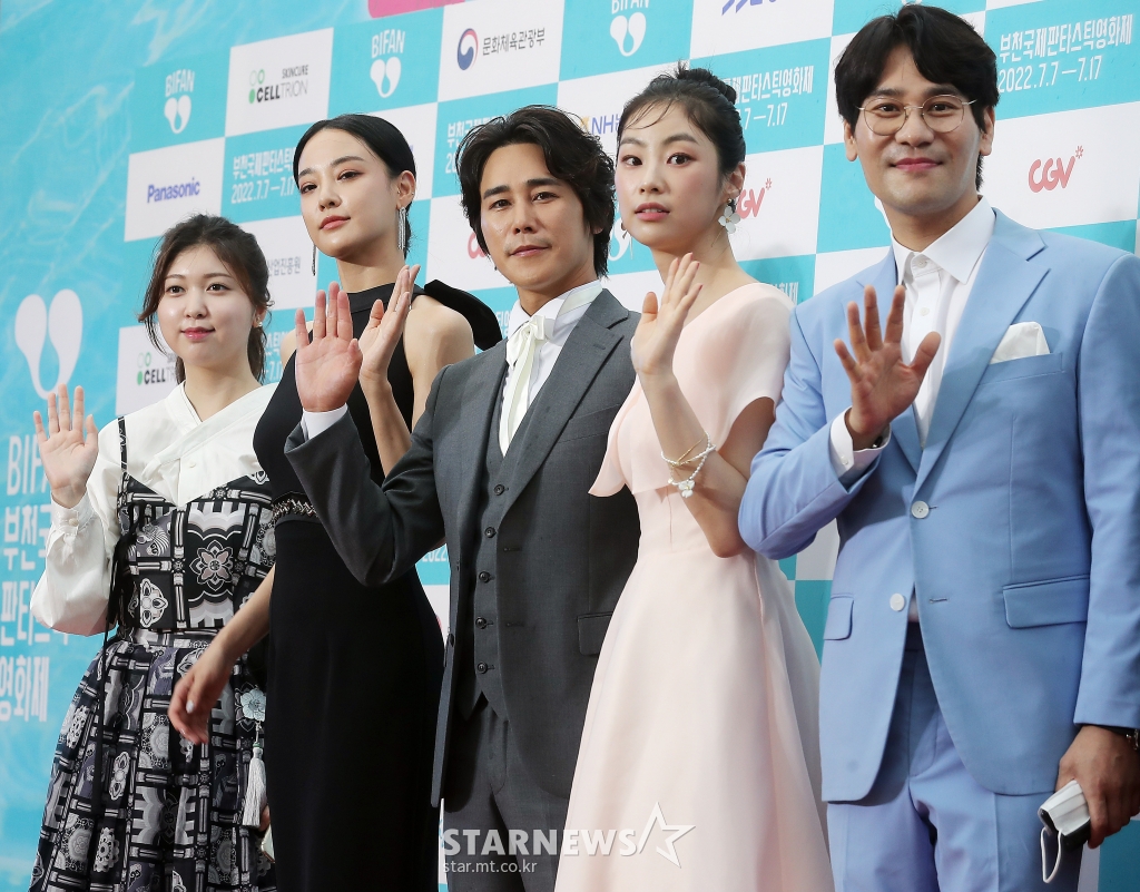 배우 안서현, 이주연, 정태우, 전수진, 강성필이 7일 오후 경기도 부천시청 잔디광장에서 열린 '제26회 부천국제판타스틱영화제(BIFAN)' 레드카펫 행사에 참석해 포즈를 취하고 있다.