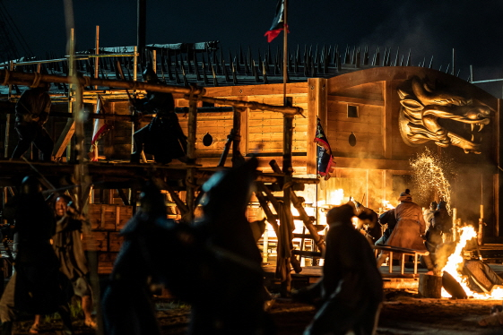 ▶우선 CG에 가장 많은 돈이 투입됐다. 프리비주얼이 무척 중요했기에 그걸 포함해서 CG에 100억원 가량을 썼다. 또 여수에 한국 사극영화 전용세트를 오픈세트로 지었다. 그리고 VFX 세트를 평창에 있는 스피드스케이트장 안에 만들었다. '명량'을 바다에 배를 직접 띄우고 찍고 난 뒤 절대로 바다에 배를 띄우지 말아야겠다고 마음먹었다. 매우 위험하다. 날씨와 기상조건에 너무 많은 영향을 받는다. 통제도 안되고.