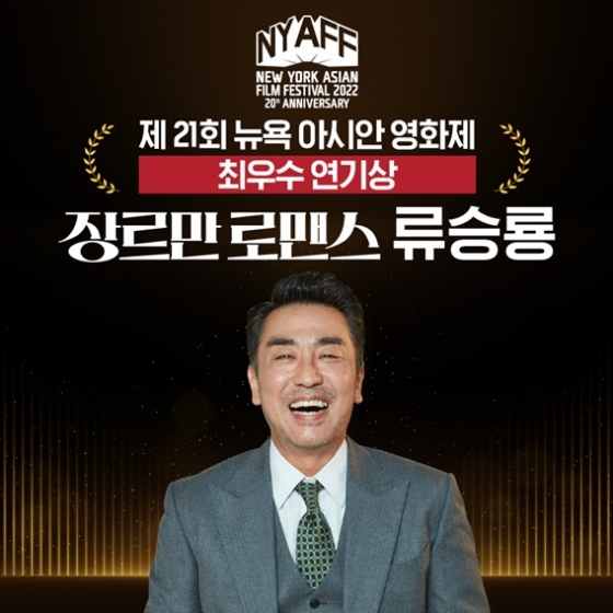 지난해 개봉한 영화 '장르만 로맨스'에서 베스트셀러 작가 '현' 역을 맡아 관객들의 마음을 사로잡았던 류승룡이 제 21회 뉴욕 아시안 영화제에서 최우수 연기상(Best from the East Award for Outstanding Performance)의 초대 수상자로 선정됐다.
