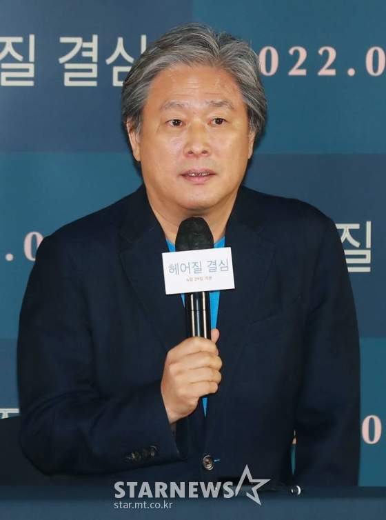 박찬욱 감독이 21일 오후 서울 CGV 용산아이파크몰에서 진행된 영화 '헤어질 결심'(감독 박찬욱) 언론시사회에 참석해 질문에 답하고 있다. 산에서 벌어진 변사 사건을 수사하게 된 형사 해준(박해일 분)이 사망자의 아내 서래(탕웨이 분)를 만나고 의심과 관심을 동시에 느끼며 시작되는 이야기를 그린 영화 ‘헤어질 결심’은 오는 29일 개봉된다. /2022.06.21 /사진=이동훈 기자 photoguy@