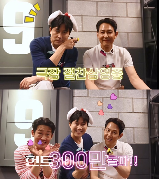 '헌트'가 지난 21일 300만 관객을 돌파한 가운데, 배우 이정재와 정우성 허성태 등은 300만 돌파 기념샷으로 자축했다.