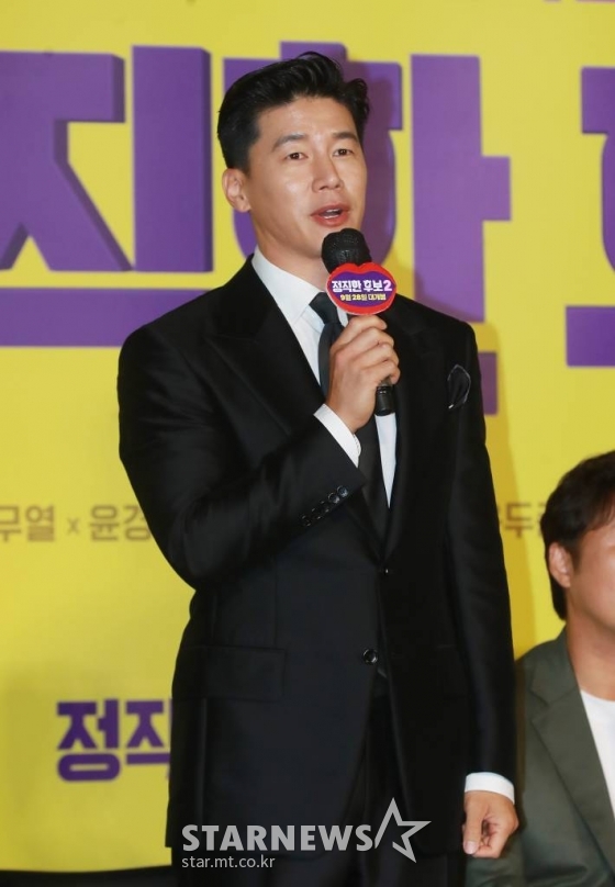 배우 김무열이 24일 오전 서울 롯데시네마 건대입구점에서 진행된 영화 '정직한 후보2'(감독 장유정) 제작발표회에 참석해 인사말을 하고 있다. '진실의 주둥이' 주상숙이 정계 복귀를 꿈꾸며 벌어지는 좌충우돌 코미디 '정직한 후보2'는 9월 28일 개봉 예정이다. /2022.08.24 /사진=이동훈 기자 photoguy@
