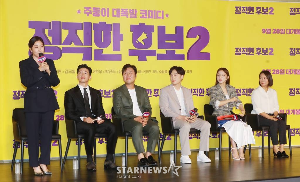 24일 오전 서울 광진구 롯데시네마 건대입구에서 영화 '정직한 후보2'(감독 장유정) 제작보고회가 열렸다. 이날 행사에는 라미란, 김무열, 윤경호, 서현우, 박진주 그리고 장유정 감독이 참석했다.