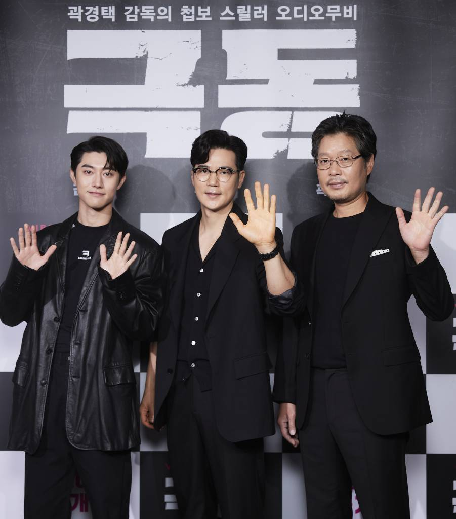 배우 곽동연, 김강우, 유재명이 1일 오전 온라인 생중계로 진행된 오디오무비 '극동'(감독 곽경택) 제작발표회에 참석해 포즈를 취하고 있다. 세계 평화를 위협할 천문학적 규모의 비자금을 차지하려는 자들이 벌이는 일촉즉발 첩보 스릴러 '극동'은 오는 26일 네이버 바이브를 통해 공개된다. /사진제공=네이버바이브 2022.09.01 /사진=이동훈 기자 photoguy@